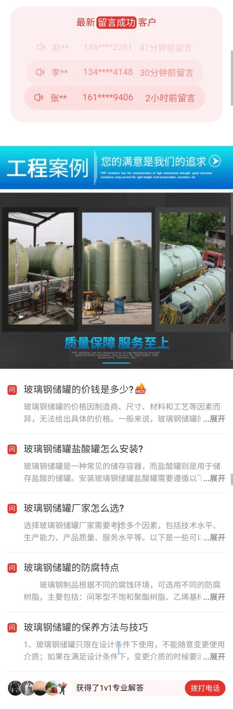 1、玻璃鋼儲(chǔ)罐只限在設(shè)計(jì)條件下使用,不能隨意變更使用介質(zhì);如果在滿足設(shè)計(jì)條件下,變更介質(zhì)的時(shí)候要清洗干凈;